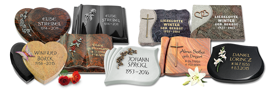 MEMORUM Grabsteine sind professionell gestaltet. Wir bieten den schnellen und preiswerten Weg zu individuellen Grabplatten, Grabsteine und alle Arten von Urnengrabsteine für alle Gräber und Gedenkstätten. Bei uns zählt Qualität! Der günstige Preis resultiert aus der standardisierten Beschriftungstechnik von ausgewählten Schriftmustern, umgesetzt in dauerhafter und hochwertiger Sandstrahltechnik oder hochwertigen Metallguss Schriften. Mit unseren Produkten entscheiden Sie sich für stilsichere und dauerhafte Grabgestaltungen vom Fachbetrieb, die rationell gefertigt und deshalb so überraschend günstig sind.
