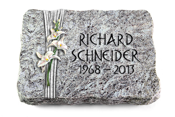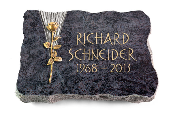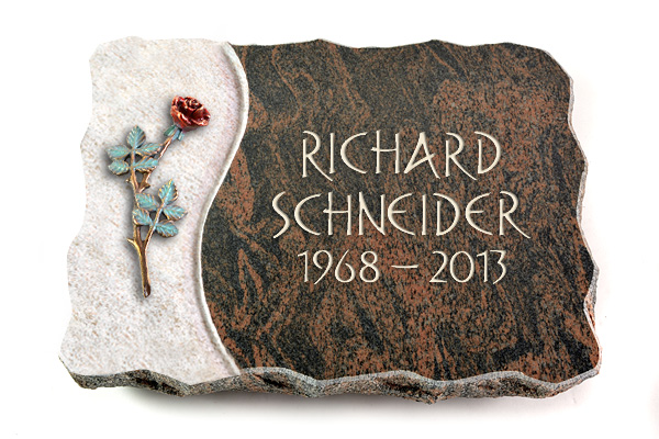 Grabgestaltung für Ihr Urnengrab oder Familiengrab: Wir bieten den schnellen und preiswerten Weg zu individuellen Grabplatten bzw. Liegeplatten für alle Gräber und Gedenkstätten. Bei uns zählt Qualität. Der günstige Preis resultiert aus der standardisierten Beschriftungstechnik von ausgewählten Schriftmustern, umgesetzt in dauerhafter und hochwertiger Sandstrahltechnik oder hochwertigen Metall-Inschriften aus Bronze- oder Aluminiumguss. Mit unseren Produkten entscheiden Sie sich für stilsichere und dauerhafte Grabgestaltungen vom Fachbetrieb, die rationell gefertigt und deshalb so überraschend günstig sind.