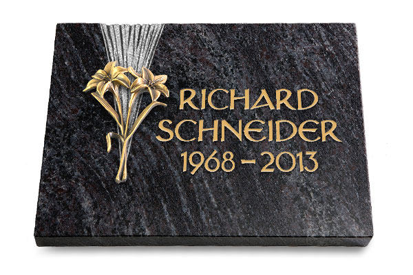 Grabgestaltung für Ihr Urnengrab oder Familiengrab: Wir bieten den schnellen und preiswerten Weg zu individuellen Grabtafeln bzw. Liegesteine für alle Gräber und Gedenkstätten. Bei uns zählt Qualität. Der günstige Preis resultiert aus der standardisierten Beschriftungstechnik von ausgewählten Schriftmustern, umgesetzt in dauerhafter und hochwertiger Sandstrahltechnik oder hochwertigen Metall-Inschriften aus Bronze- oder Aluminiumguss. Mit unseren Produkten entscheiden Sie sich für stilsichere und dauerhafte Grabgestaltungen vom Fachbetrieb, die rationell gefertigt und deshalb so überraschend günstig sind.